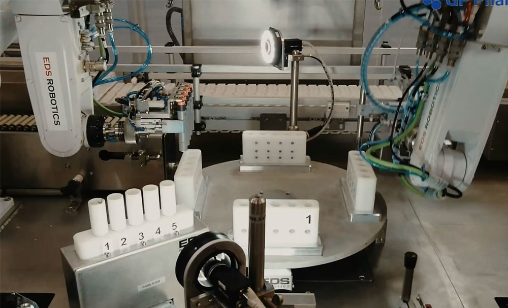 Proceso completo de llenado automático con testeo aleatorio y listo para embalaje. Discriminación de defectos. Control de calidad máxima.